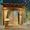 和風な外観と、竹で作られた看板が目印。