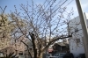道路側と、奥に1本ずつ桜の木があります。道路側も以前はとても立派な枝ぶりだったんですが、歩道に枝がせり出してくるにつれ通行の障害になってきたので、何年か前に伐採されてしまいました。それでも、だんだん、綺麗に咲き出してきています。奥の桜も7分咲きぐらいでしょうか。