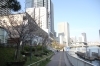 50m程でしょうか。歩道の真ん中に、桜並木が並びます。一番東の桜は7分ほどに咲いていますが、西に行くにつれ、まだ3分咲き程です。満開になれば、道行く方々を楽しませてくれそうです。